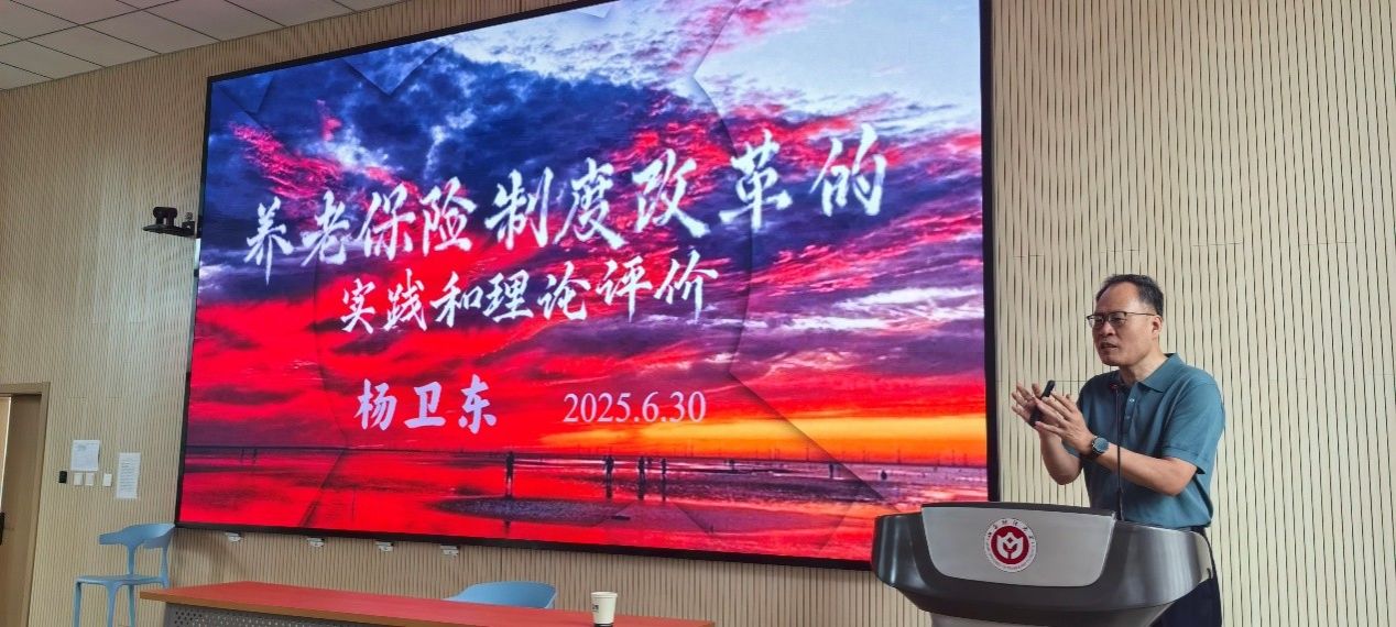 讲座伊始,杨卫东院长以时间为轴,系统梳理了1991 年至 2005年我国养老保险制度的发展历程。他指出,这十五年间,我国养老保险制度历经“改革 - 深化 - 统一制度 - 完善制度”四个关键阶段:1991 年开启改革探索,打破传统单位保障模式,逐步向社会统筹过渡;随后的深化阶段,不断调整制度细节,适应市场经济发展需求;统一制度阶段,则致力于消除不同群体间的制度差异,促进公平性;到 2005 年,通过一系列政策完善,使养老保险制度更贴合国情与民众需求。杨院长强调,这些变革是我国经济社会发展的必然选择,有力推动了经济发展、维护了社会公平正义,为社会和谐稳定筑牢了根基。