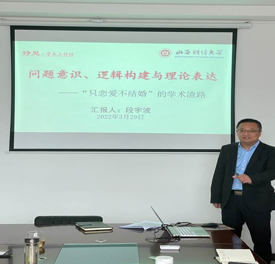 3月29日,yl23455永利官网“待见·学术工作坊”举办第九期学术研讨活动。yl23455永利官网副院长段宇波博士作了题为“问题意识、逻辑构建与理论表达——‘只恋爱不结婚’的学术渣路”的学术分享。活动由行政管理系主任刘海燕博士主持。