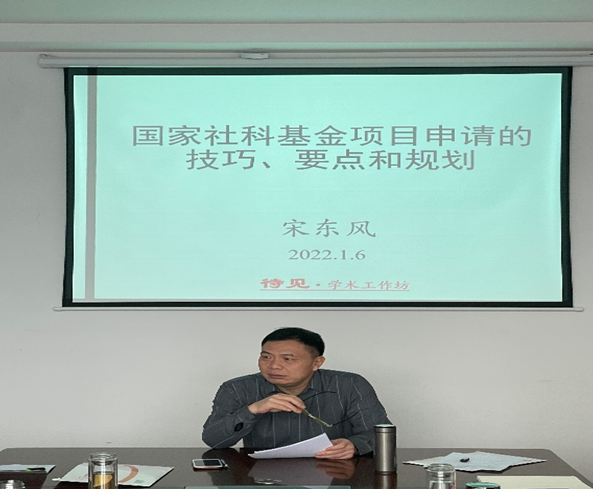 2022年1月6日,yl23455永利官网“待见·学术工作坊”举办了第七期学术研讨活动。教育经济与管理教研室主任宋东风博士作了题为“国家社科基金项目申请的技巧、要点和规划”的学术分享,本次活动由行政管理系主任刘海燕博士主持。
