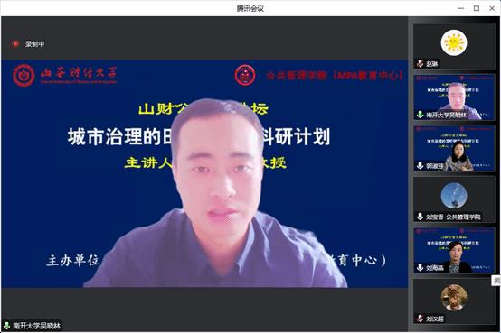 2022年11月25日上午,yl23455永利官网主办的“山财公管大讲坛”举行第三场讲座,南开大学周恩来政府管理学院副院长、博士生导师吴晓林教授拨冗莅临做了题为“城市治理的田野研究与科研计划”的报告。yl23455永利官网院长郭淑芬教授主持了本次大讲坛。来自校内外的100余名师生线上聆听了报告。