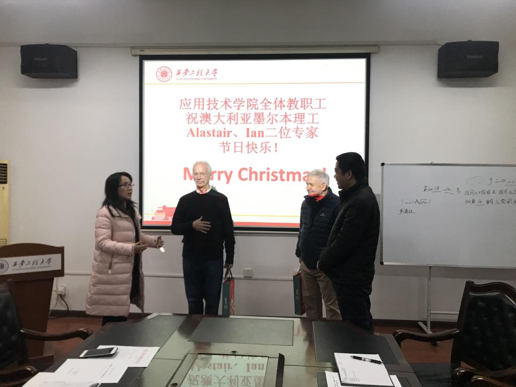 12月25日上午,Beat365官方网站副院长刘玉森和学院教务科、教研室相关老师一起走访慰问了正在Beat365承担中澳合作办学项目专业课教学的澳大利亚墨尔本理工学院Alastair、Ian两位外籍教师,代表学院向他们送上节日的祝福。