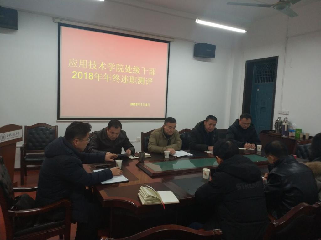 2019年1月4日,Beat365官方网站在金花校区主楼西配楼学院会议室召开处级干部2018年度述职大会。校纪委书记井浩、组织部张旭、学院党政干部及全体教职工参加会议。