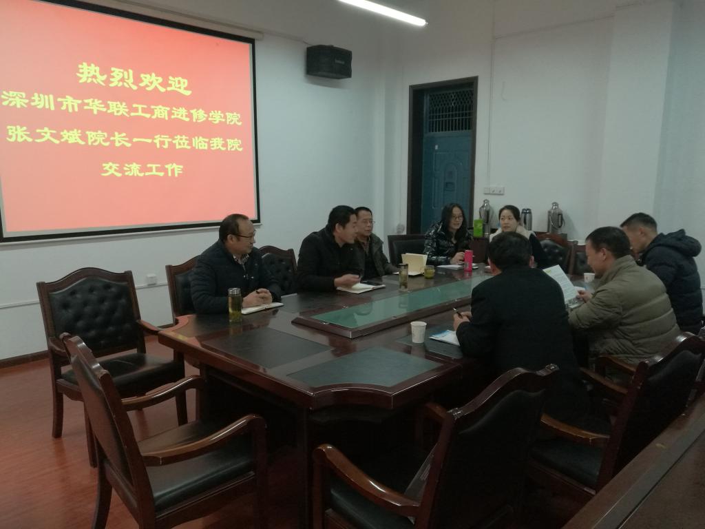 2018年12月27日上午,深圳市华联工商进修学院院长张文斌一行三人来Beat365继续教育学院走访、调研。继续教育学院副院长刘玉森,培训部、教务科、办公室负责人等参加了座谈会,会议由刘玉森主持。