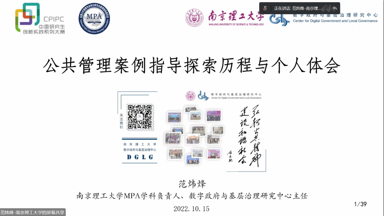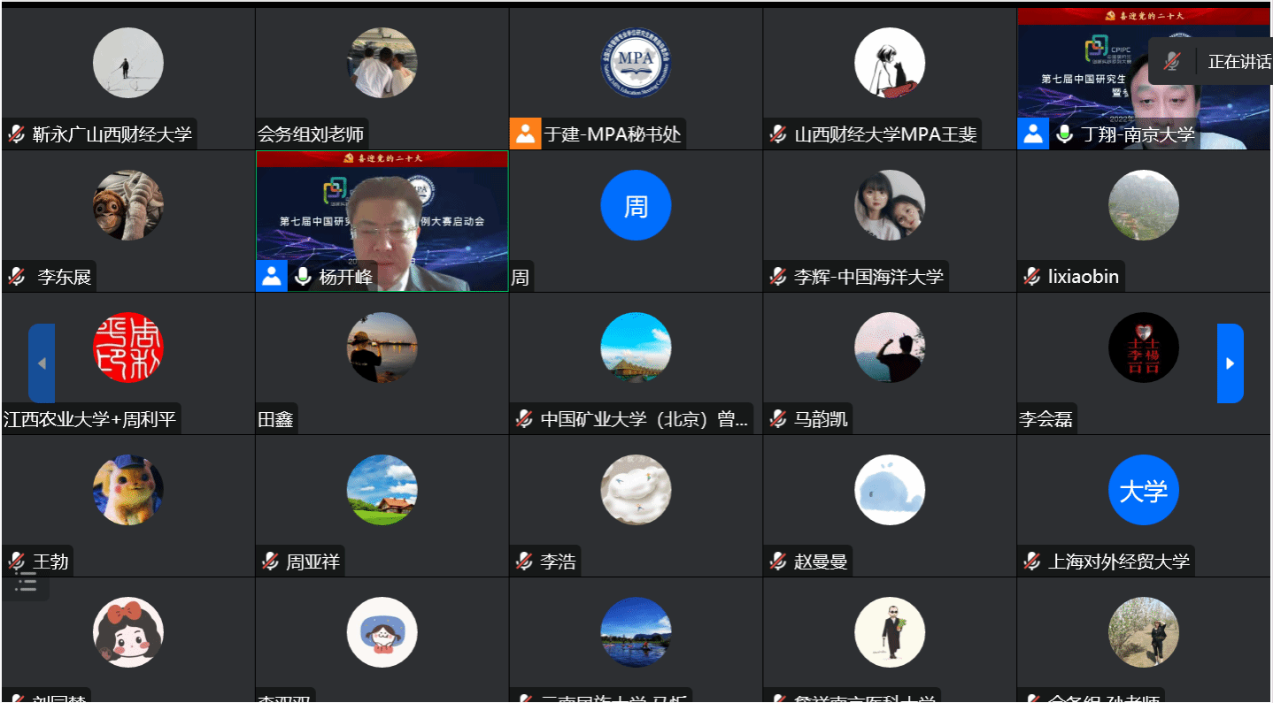 在中国共产党第二十次全国代表大会胜利召开之际,2022年10月15-16日,由全国公共管理专业学位研究生教育指导委员会主办的“第七届中国研究生公共管理案例大赛启动会暨参赛培训会”以网络视频会议形式举行。会议采取腾讯会议和哔哩哔哩等线上平台直播进行,全国近200家MPA培养单位师生参加。为持续推进我校MPA师资力量建设和案例教学质量,积极引导MPA研究生运用公共管理理论分析实际问题能力,不断提升案例采集、编写和参赛质量,切实做好赛事前期准备工作,yl23455永利官网党委和行政高度重视,组织学院20余名MPA导师和150余名MPA研究生以“同上一堂课”形式参加培训。