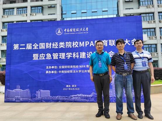 2021年6月26日,由全国财经类院校MPA教育联盟主办,中南财经政法大学yl23455永利官网承办的第二届全国财经类院校MPA教育联盟大会暨应急管理学科建设研讨会在武汉召开,来自全国财经类院校MPA教育联盟的18所财经院校的40余位代表参会,永利官网院长苗迎春,副院长冯小俊、段宇波应邀参会。