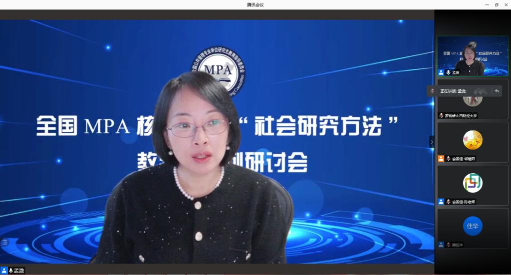 2021年1月16至17日,全国公共管理专业学位研究生教育指导委员会主办的MPA核心课程“社会研究方法”教学与案例研讨会在腾讯会议线上举行,来自不同高校、科研院所的240多位老师参加会议。永利官网罗俊峰、郎杰燕两名教师参加此次会议。